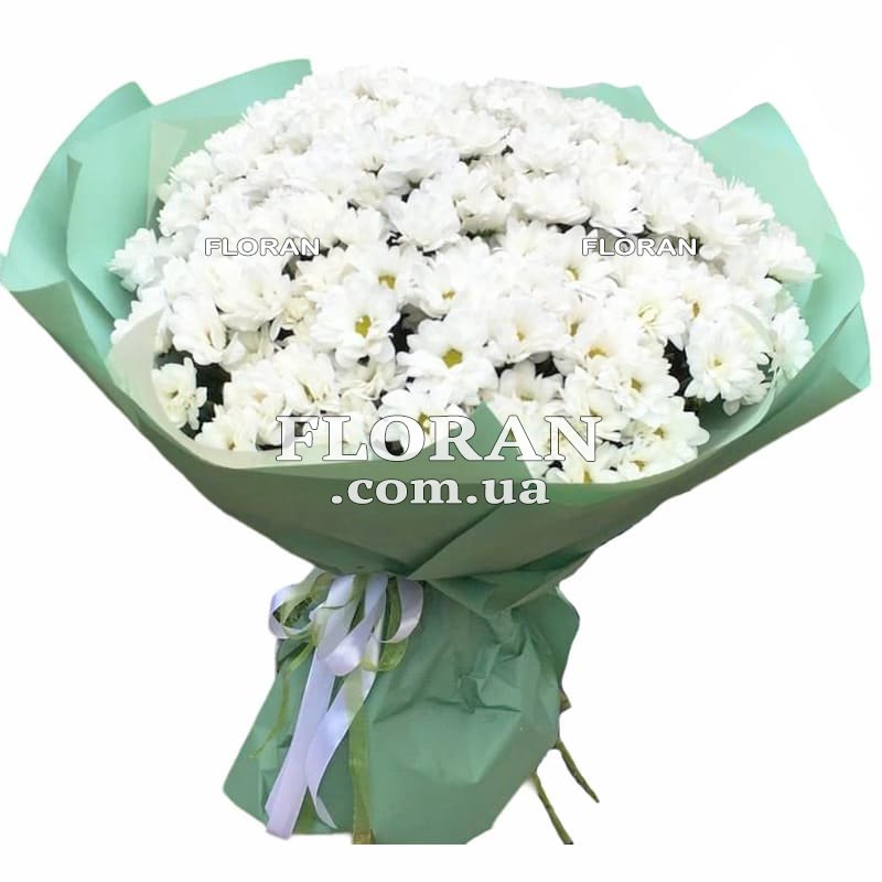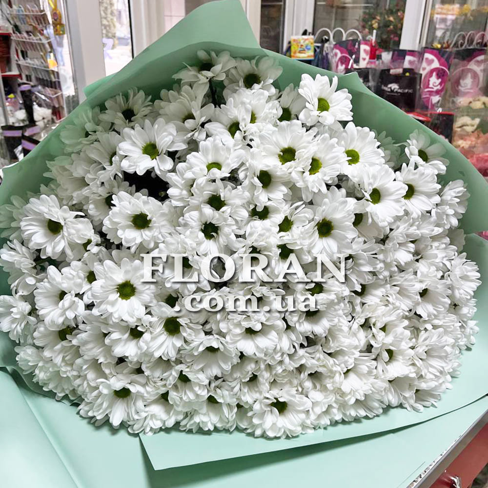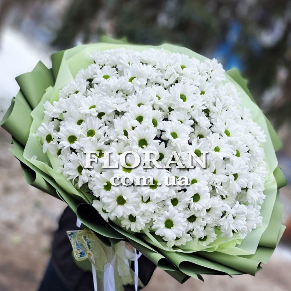 Багато ромашок - код товару FL-894. У цьому букеті зібрано багато ромашок - 31 біла ромашкова хризантема. Цей букет порадує око своєю красою і багатством квітів. Біла ромашкова хризантема - це символ чистоти, невинності та свіжості. Її ніжні пелюстки і ніжна текстура надають букету вишуканості та елегантності. Білий колір ромашки також асоціюється зі світом, гармонією і чистотою думок.