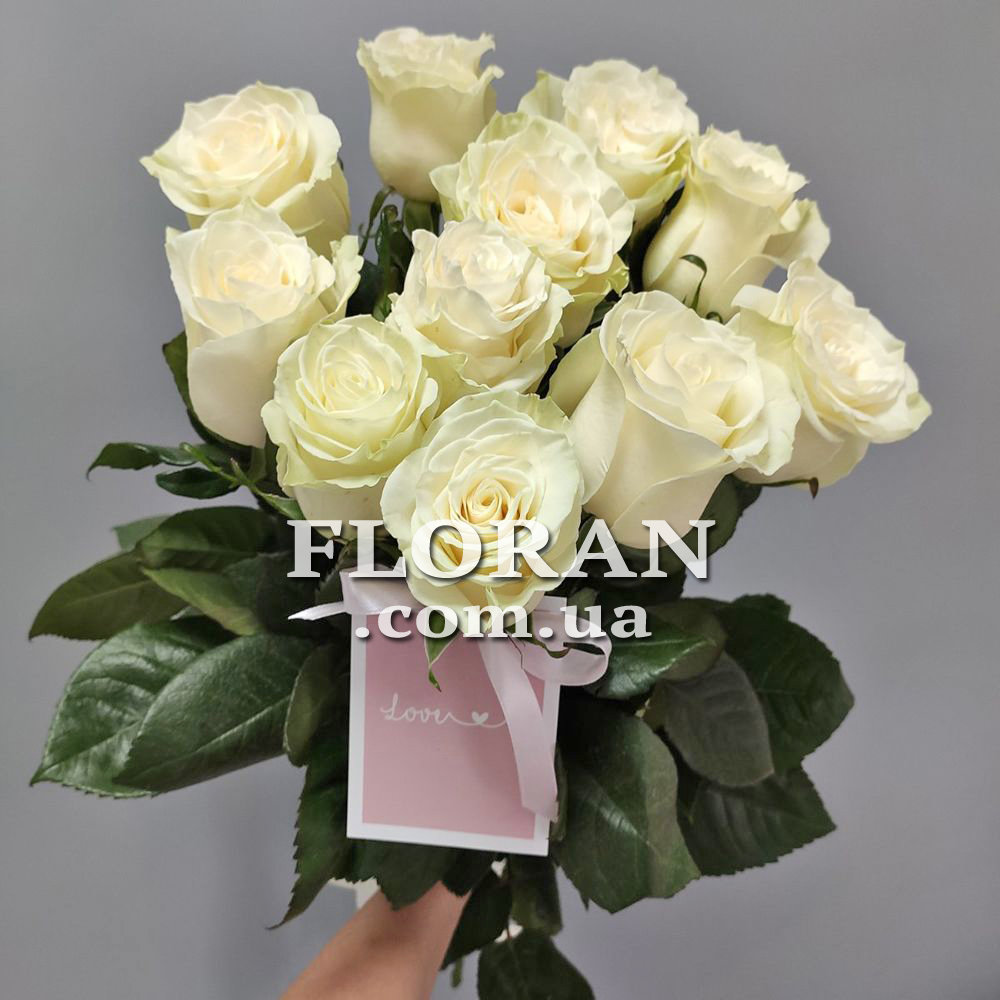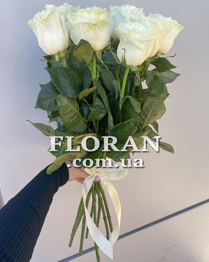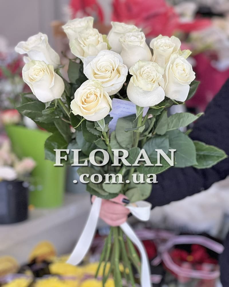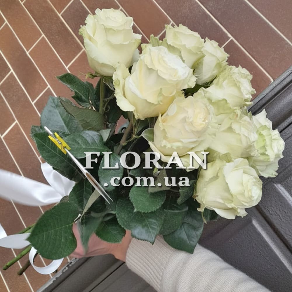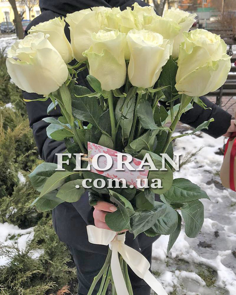 Білі голландські троянди - код товару FL-78. Букет імпортних троянд - це завжди прекрасний подарунок для будь-якого випадку. Але якщо ви хочете порадувати свою другу половинку або близьку людину, то найкраще вибрати букет з 11 білих імпортних троянд зі стрічкою. Ці троянди мають ніжний аромат і красиву форму бутона. Білий колір символізує чистоту, невинність і щирість почуттів. Букет з імпортних троянд - це завжди висока якість і довговічність квітів. Подаруйте цей букет своїй коханій і вона обов'язково оцінить вашу турботу та увагу.