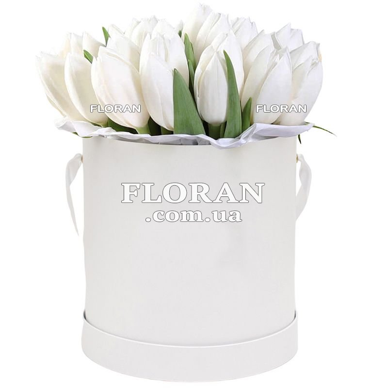 23 білі тюльпани, коробка