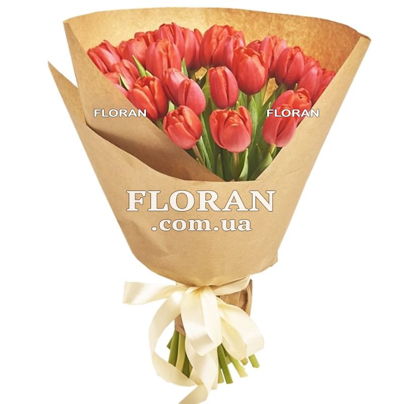 Букет 35 тюльпанів - код товару FL-2270 - це вражаючий жест уваги та пристрасті. Червоні тюльпани символізують глибоке і пристрасне кохання, і такий букет ідеально підходить для особливих моментів у житті. Такий букет стане чудовим подарунком для вашої другої половини у день народження, ювілей, День святого Валентина чи важливі ювілеї ваших стосунків. Він висловить ваші щирі почуття та бажання зробити цей день особливим. Червоні тюльпани, що поєднують красу та ніжність, завжди будуть у моді. Цей букет привнесе до будинку яскраві фарби та тепло. Упакований у відповідну упаковку, він стане чудовим подарунком, який точно порадує вашого одержувача.