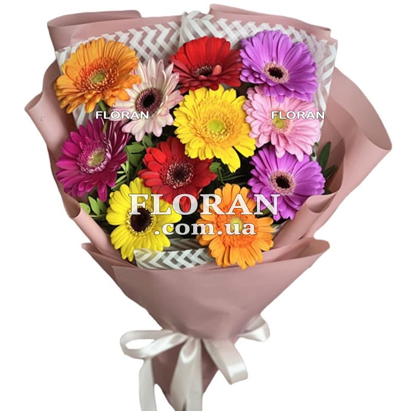 Букет гербер чоловіку - код товару FL-1566. Букет із 11 різнокольорових гербер, викладених каскадом, стане чудовим подарунком для чоловіка. Гербери – це яскраві та життєрадісні квіти, які зможуть підкреслити його індивідуальність та принести радість у його життя. Різнокольорові гербери у букеті створюють враження яскравості та різноманітності. Кожен колір символізує свої емоції та почуття. Наприклад, червоний гербер може виражати пристрасть та енергію, жовтий – радість та щастя, помаранчевий – теплоту та дружелюбність, а рожевий – ніжність та захоплення. У поєднанні всі ці кольори створюють гармонійний та яскравий образ. Каскадне розташування герберів надає букету особливої елегантності та вишуканості. Вони ніби перетікають один одного, створюючи гарну композицію. Такий букет приваблюватиме погляди і викликатиме захоплення. Подарувати такий букет чоловіку можна з різних приводів – день народження, ювілей, свято або просто для того, щоб висловити свою подяку та вдячність. Він стане символом вашої турботи та уваги, а також покаже ваше розуміння його індивідуальності та смаку. Упаковка букета також має значення. Ви можете вибрати стильну та мужню упаковку, що відповідає смаку одержувача. Це може бути паперова обгортка, квітковий пакет або навіть стильний горщик для квітів. Важливо, щоб упаковка доповнила загальний образ букета та створила завершений вигляд. Букет гербер для чоловіка - це унікальний та оригінальний подарунок, який дозволить висловити ваше захоплення та кохання. Він нагадає йому про вашу турботу та підтримку, а також подарує яскраві емоції та позитивні враження.