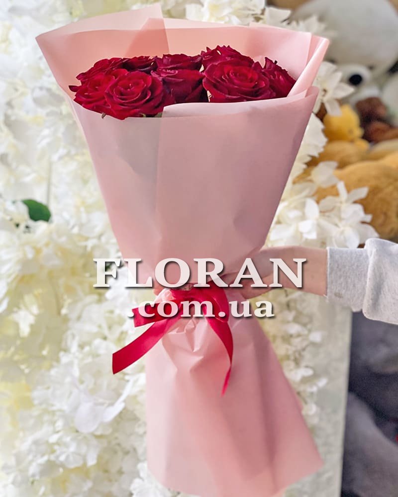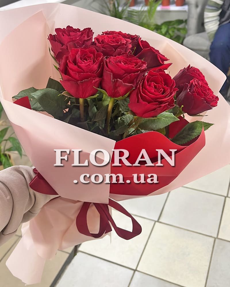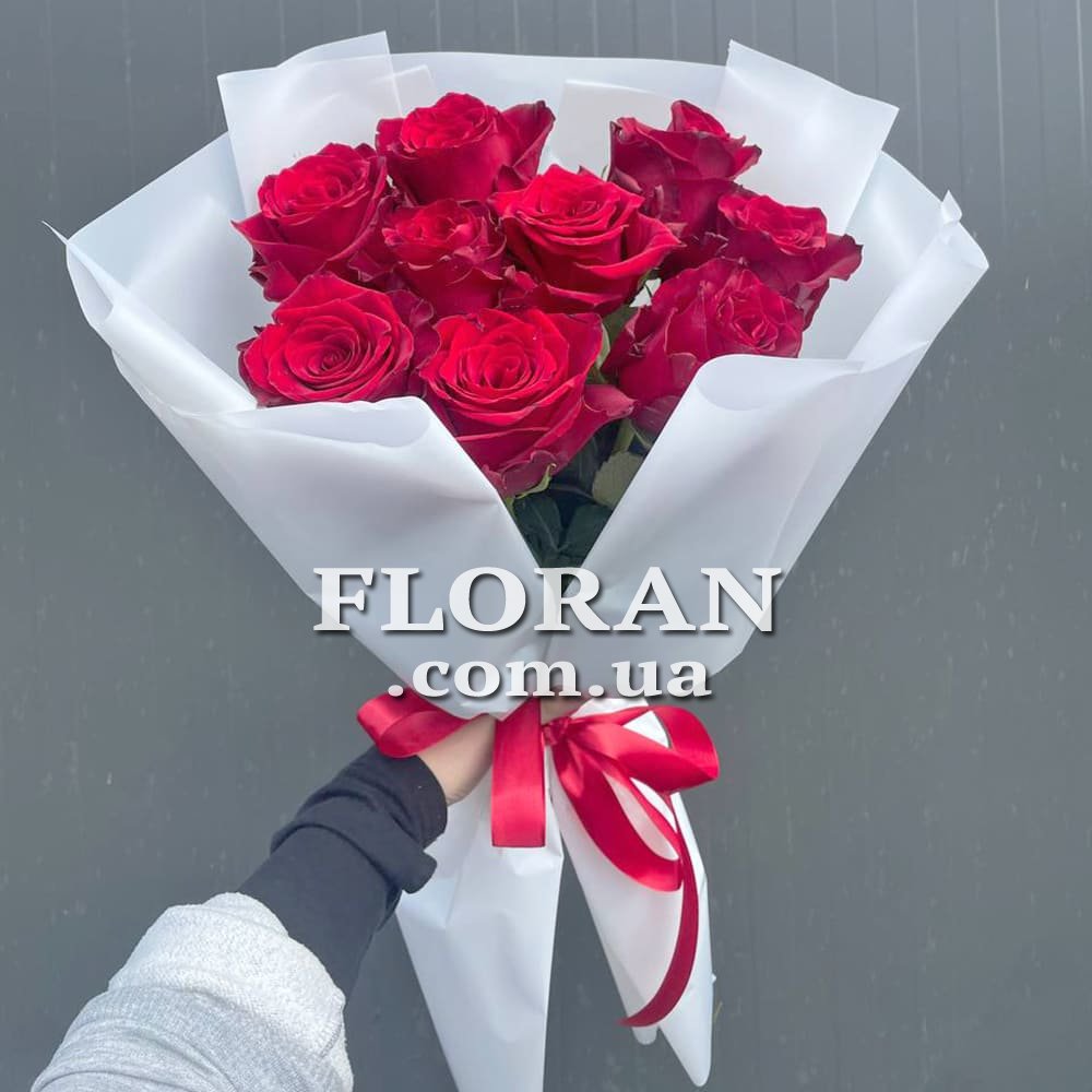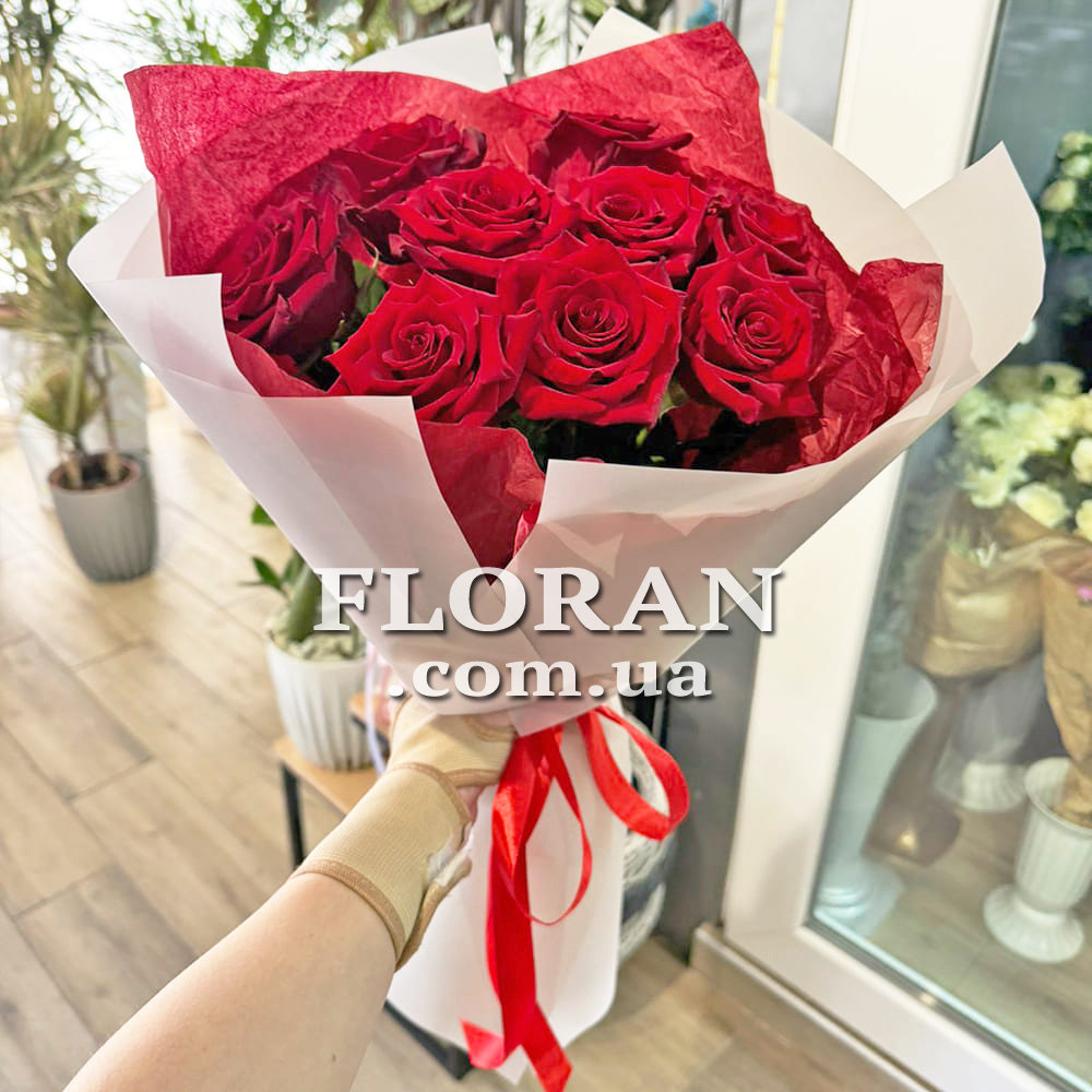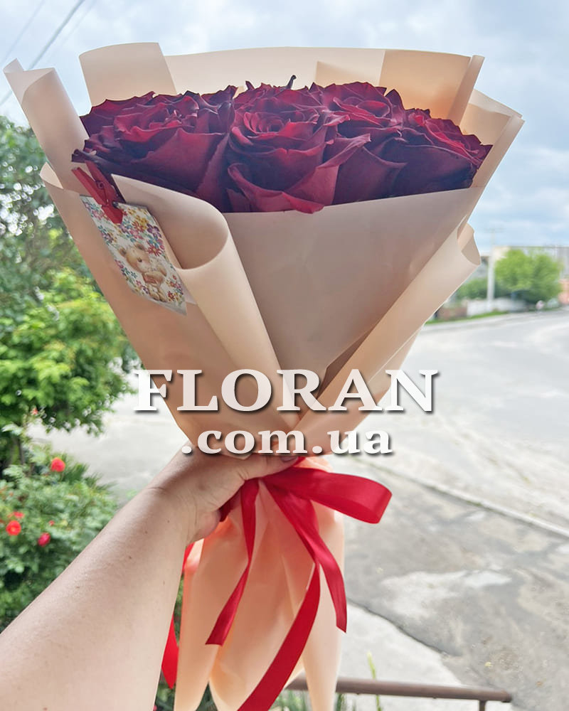 Букет із 9 червоних троянд - код товару FL-735. Цей вишуканий букет із 9 червоних троянд, який є ідеальним вибором для тих, хто цінує елегантність та пристрасну красу. Червоні троянди символізують любов і пристрасть, і вони додають букету нотку таємничості і глибини. Кожна бордова троянда у цьому букеті є виявом сильних емоцій та глибоких почуттів. Їхні красиві пелюстки, пофарбовані в насичені відтінки, притягують погляди і втілюють у собі чудову симфонію пристрасті та романтики.