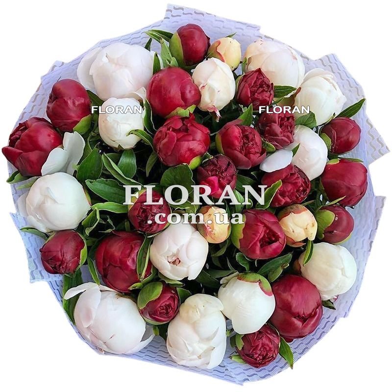 Букет з червоних і білих півоній - код товару FL-3044 - являє собою чудове поєднання елегантності та пристрасті. Червоні півонії символізують любов, пристрасть і силу почуттів, тоді як білі півонії уособлюють чистоту, невинність і гармонію. Кожна півонія в цьому букеті вирізняється великими, пишними бутонами, які наповнюють простір своїм ніжним ароматом і красою. Упаковка виконана з турботою про кожну квітку, щоб вони зберігали свіжість і привабливість. Замовити букет з червоних і білих півоній - значить подарувати незвичайне враження, що запам'ятовується. Цей букет стане прекрасним символом вашої любові і захоплення, створюючи особливу атмосферу і радість для вас і вашої близької людини. Нехай кожна півонія нагадує про ваш найкращий спогад і створює незабутні моменти в житті ваших близьких.