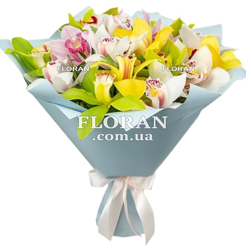 Букет із цимбідіум - код товару FL-1624 - це справжній витвір мистецтва природи. Кожна цимбідіум-орхідея в цьому букеті вражає своєю красою, грацією та різноманітністю відтінків. Вони є елегантним та екзотичним вибором для створення вражаючого квіткового ансамблю. Різнокольорові цимбідіуми в букеті мають унікальну привабливість. Кожен колір символізує певні емоції та почуття. Вони можуть виражати любов, захоплення, подяку чи побажання щастя. Букет із різнобарвних цимбідіумів ідеально підійде для дарування коханій жінці, мамі, сестрі чи колезі. Він буде яскравим і незабутнім подарунком, який уособлює красу і радість. Наш магазин пропонує тільки найсвіжіші та найякісніші цимбідіуми в кожному букеті. Ми дбайливо пакуємо квіти, щоб вони зберігали свою свіжість і елегантність під час доставки. Ви можете бути впевнені, що ваш букет цимбідіумів буде виглядати чудово і принесе радість та захоплення одержувачу. Ми також здійснюємо доставку наших букетів цимбідіумів до будь-якого міста України. Завдяки нашій надійній та оперативній службі доставки ваш подарунок буде доставлений точно в термін і в бездоганному стані. Ми прагнемо зробити процес доставки зручним та приємним для вас та вашого одержувача. Виберіть букет із різнокольорових цимбідіумів, щоб подарувати незабутні емоції та враження. Цей букет стане особливим символом вашого кохання, поваги та захоплення перед його одержувачем. Він дозволить передати ваше привітання та добрі побажання у найніжніший та найелегантніший спосіб.