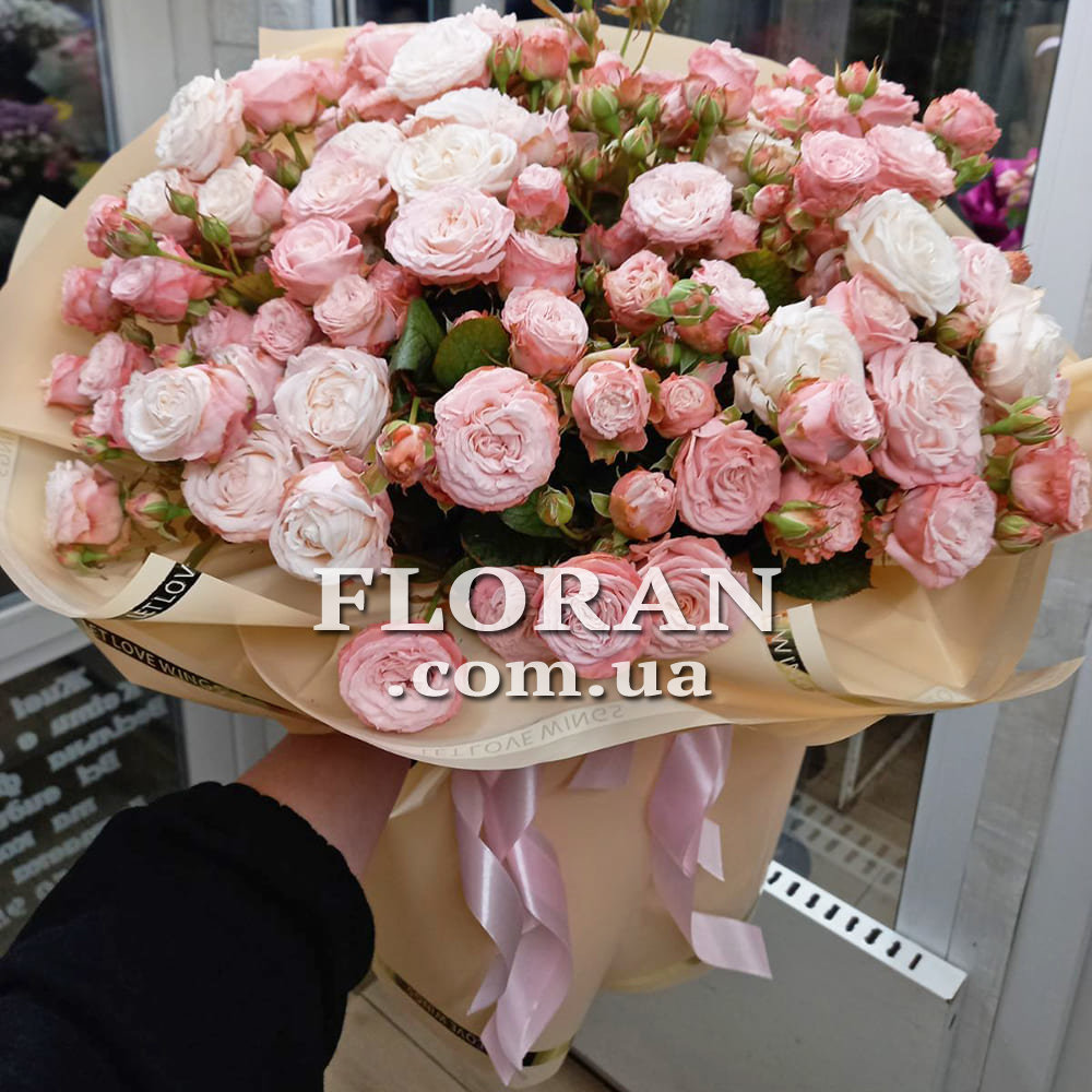 Букет із піонових троянд - код товару FL-1393 - це втілення ніжності та краси. У ньому зібрані 29 кремових кущових піоноподібних троянд, що створюють чудовий образ елегантності і вишуканості. Півонові троянди – це квіти, які привертають погляд своєю вишуканою формою та пишністю. Їх пелюстки розкриваються чудово, створюючи враження справжніх півоній. Кожна троянда у цьому букеті є унікальним проявом краси та чарівності. Кремовий відтінок троянд додає ніжності та романтики у цей букет. Він створює атмосферу умиротворення та привабливості. Букет із кремових півонових троянд буде ідеальним подарунком для особливих моментів та особливих людей. Цей букет з 29 кремових кущових піоноподібних троянд упакований з турботою і увагою, щоб підкреслити його унікальність і привабливість. Він радуватиме око своєю красою та запахом, стаючи справжнім квітковим шедевром. Півонові троянди символізують красу, добробут та любов. Вони є прекрасним подарунком для особливих жінок, які заслуговують лише на найкраще. Букет з півонових троянд буде не тільки приємним сюрпризом, але й вираженням вашої турботи та захоплення. Отримання цього букета буде незабутнім моментом, який запам'ятається надовго. Він наповнюватиме серце радістю та вдячністю, адже він символізує вашу любов та турботу про отримувача. Букет з півонових троянд стане джерелом натхнення та краси, наповнюючи простір своєю вишуканою присутністю.