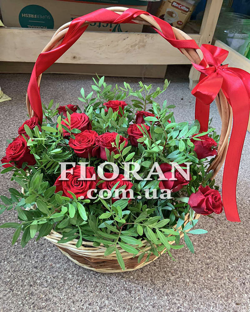 Букет з троянд у кошику - код товару FL-640. Цей чудовий букет із 15 червоних троянд у кошику стане чудовим подарунком для будь-якого випадку. Кошик з троянд – це не тільки красиво, але й зручно, адже такий букет не потрібно додатково пакувати. 15 червоних троянд - це символ пристрасті та кохання, тому цей букет ідеально підійде для подарунка коханій людині. Червоного кольору троянди виглядають дуже ефектно та яскраво, вони будуть тішити очі свого власника довгий час. Цей букет із троянд у кошику – підійде на подарунок і дівчині, і хлопцю, і навіть дитині.