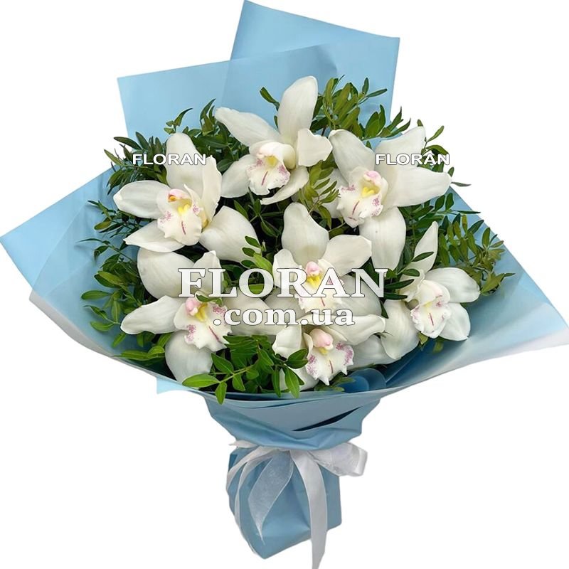 7 білих орхідей, зелень, упаковка