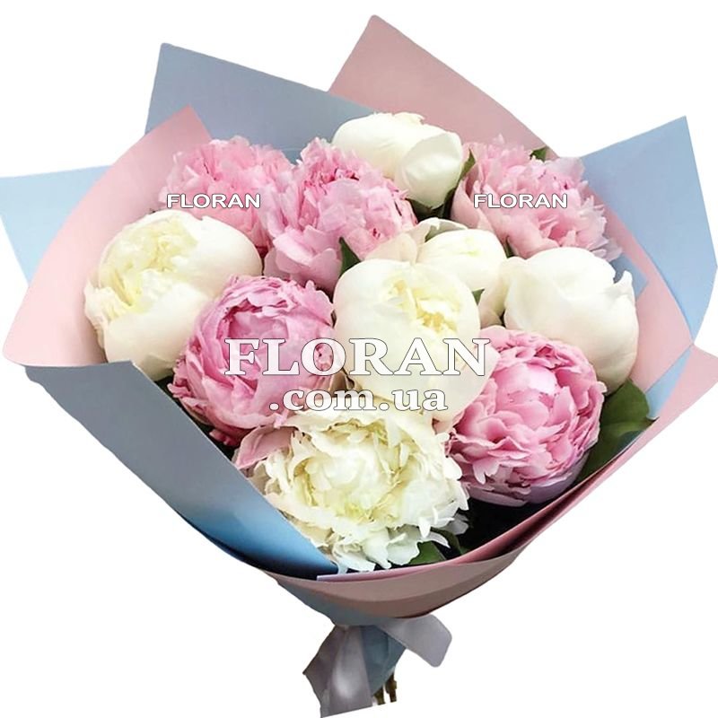 11 білих і рожевих імпортних півоній, упаковка