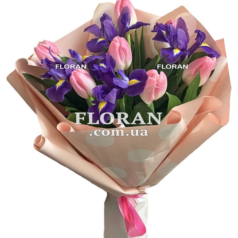 Букет рожеві тюльпани з ірисами – код товару FL-2439 є прекрасним та ніжним подарунком. Ось чому: Рожеві тюльпани: Рожеві тюльпани зазвичай асоціюються з ніжністю та турботою. Вони можуть бути ідеальним способом висловити свої ніжні почуття. Рожевий колір також символізує галантність та захоплення. Сім рожевих тюльпанів надають букету витонченості та ніжності. Іриси: Іриси – це квіти, які символізують мудрість та натхнення. Вони можуть бути інтерпретовані як символ емоційної підтримки та духовного зростання. Шість ірисів додають у букет яскраві акценти та барвистість. Цей букет є поєднанням ніжності та мальовничості, що робить його чудовим подарунком для вираження глибоких почуттів та поваги до отримувача. Упаковка букета забезпечує його збереження та надає йому акуратного та презентабельного вигляду. В цілому, це ніжний та стильний букет, який здатний подарувати радість та натхнення вашій близькій людині.
