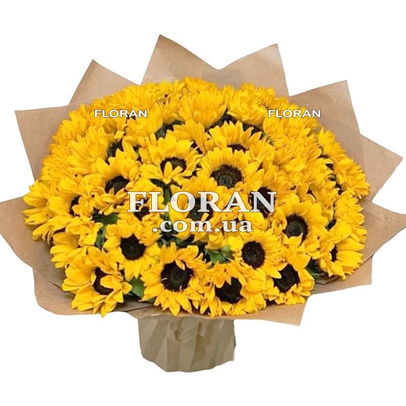Букет соняшників на День Народження - код товару FL-1506. Букет соняшників на День Народження чудових 45 штук - це справді вражаючий та приємний подарунок, який подарує незабутні моменти радості та щастя. Цей Великий та розкішний букет соняшників стане виразним символом вашої любові, турботи та уваги. Коли ваша кохана отримає такий букет від вас, особливо якщо ви на відстані, її серце буде наповнене теплом і радістю. Цей знак уваги покаже, що ви думаєте про неї навіть на відстані, і вона відчує вашу присутність та турботу у кожній квітці. А коли мама отримає такий сюрприз від своїх дітей, це буде для неї справжньою радістю та щастям. Букет соняшників принесе їй не тільки красу і свіжість квітів, але й нагадає про ваше ніжне і вдячне кохання, про дитячу прихильність і вдячність. Ми розуміємо, наскільки важливо створити особливе враження у такі особливі моменти. Тому наша команда флористів з великою увагою та професіоналізмом складе цей чудовий букет соняшників, щоб кожна квітка була ідеальною і передавала найтепліші та найщиріші почуття. Ми також пропонуємо зручні умови доставки, щоб ваш подарунок був доставлений у потрібний час та місце. Таким чином, ви зможете здивувати та порадувати своїх близьких, навіть перебуваючи вдалині.