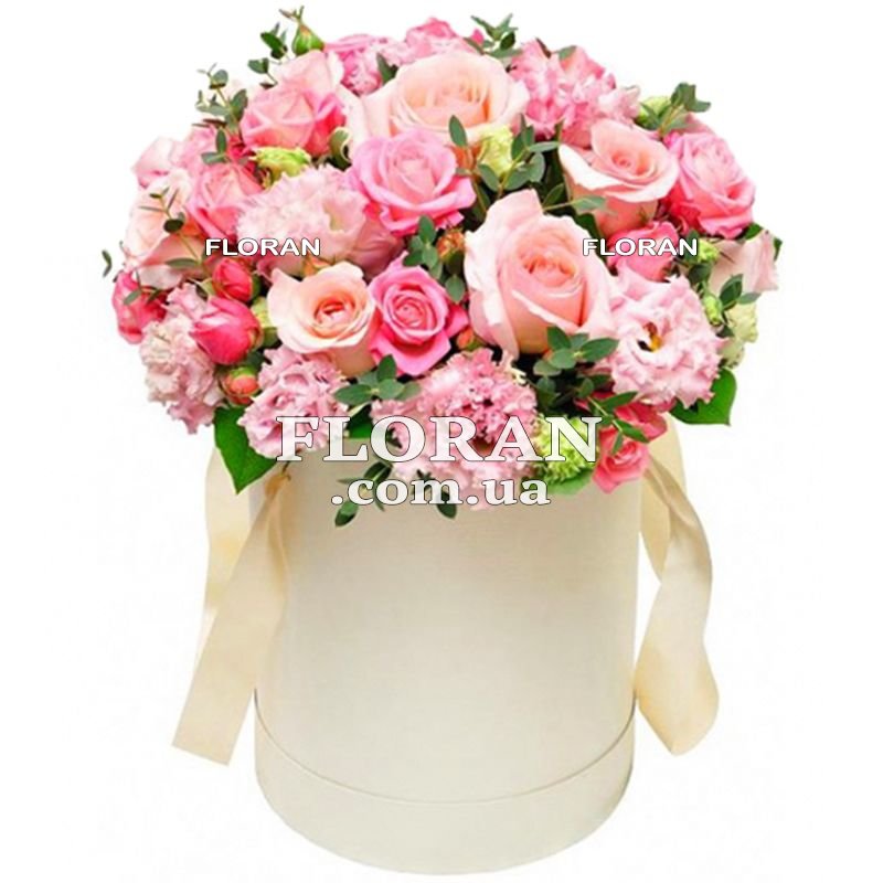 Букет у капелюшній коробці - код товару FL-192. Квіти в коробці мають дуже вишуканий та елегантний вигляд. У ньому зібрані 7 рожевих троянд, 6 кущових троянд і 6 еустом. Кожна квітка в цьому букеті підібрана з особливою ретельністю, щоб створити гармонійне поєднання кольорів і форм. Коробка з квітами виконана в ніжних відтінках білого і рожевого кольору, що надає їй особливої вишуканості. Троянди та еустоми в коробці створюють неповторний аромат, який тішитиме вас довгий час. Цей букет - чудовий подарунок для будь-якого випадку, чи то день народження, чи то весілля, чи то ювілей. Він подарує радість і посмішку вашим близьким і друзям. Подаруйте їм цей букет у капелюшній коробці і вони назавжди запам'ятають цей прекрасний момент.