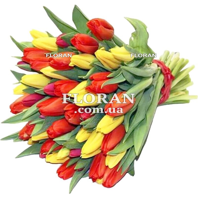 Букет яскравих тюльпанів - код товару FL-2403 - це справжня веселка у квітах! Такий букет із різнокольорових тюльпанів створює яскравий та святковий настрій. Він ідеально підходить для того, щоб подарувати радість та захоплення близьким людям. Різнокольорові тюльпани в букеті можуть символізувати різноманітність почуттів та емоцій. Кожен колір тюльпану може мати свій сенс. Наприклад, червоні тюльпани можуть виражати пристрасть, жовті – радість та щастя, рожеві – ніжність та захоплення, а фіолетові – загадковість та натхнення. Такий букет чудово підійде для урочистих моментів, таких як ювілей, весілля, річниця, а також для подарунка просто так, щоб підняти настрій і зробити день особливим. При замовленні в нашому магазині ви можете вибрати упаковку або стрічку, щоб зробити ваш подарунок більш ефектним. Доставка доступна як у будні, так і у вихідні, щоб задовольнити ваші побажання. Наші букети завжди свіжі та барвисті, щоб порадувати отримувача. Подаруйте яскравість та красу з букетом із 49 різнокольорових тюльпанів!