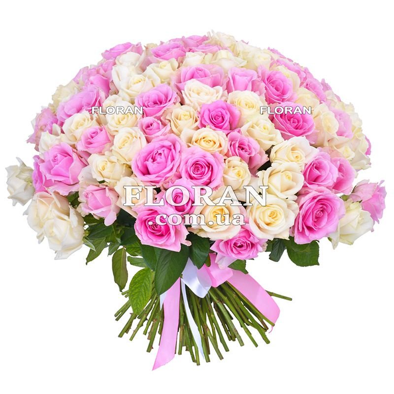 Букет зі 101 троянди білого і рожевого кольору - це воістину вражаючий і розкішний подарунок, який точно не залишить байдужою жодну жінку. Білі троянди символізують чистоту, ніжність і непорочність, а рожеві троянди висловлюють любов, визнання і вдячність. Такий букет може передати багато почуттів, від яскравих емоцій до тонких нюансів.