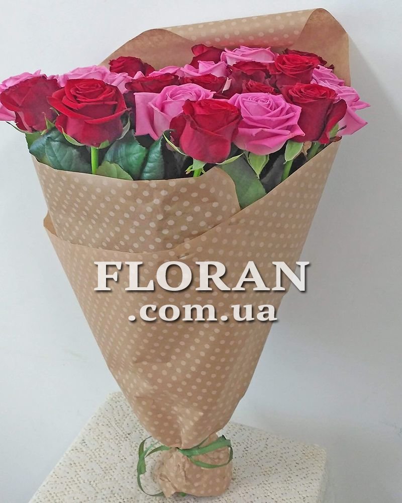 Букет з червоних і рожевих троянд