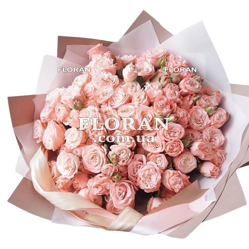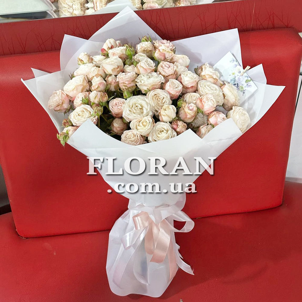 Букет з піоноподібних троянд - код товару FL-648 - це напрочуд гарний і романтичний подарунок, який чудово підійде для будь-якого випадку. У цьому букеті 23 кремові кущові півонієподібні троянди, які створюють вишукану композицію з бархатистими пелюстками і ніжним ароматом. Такий букет буде прекрасним подарунком для коханої жінки, мами чи сестри. Кущові троянди вважаються одними з найпопулярніших квітів у світі, і це не дивно, адже вони володіють розкішним зовнішнім виглядом і прекрасним ароматом. Букет із кремових півонієподібних троянд обіцяє стати не тільки гарною прикрасою, а й залишити незабутні враження і захоплення у того, хто його отримає. Такий букет можна дарувати до будь-якого свята, а також просто так, щоб подарувати людині радість і посмішку на обличчі.