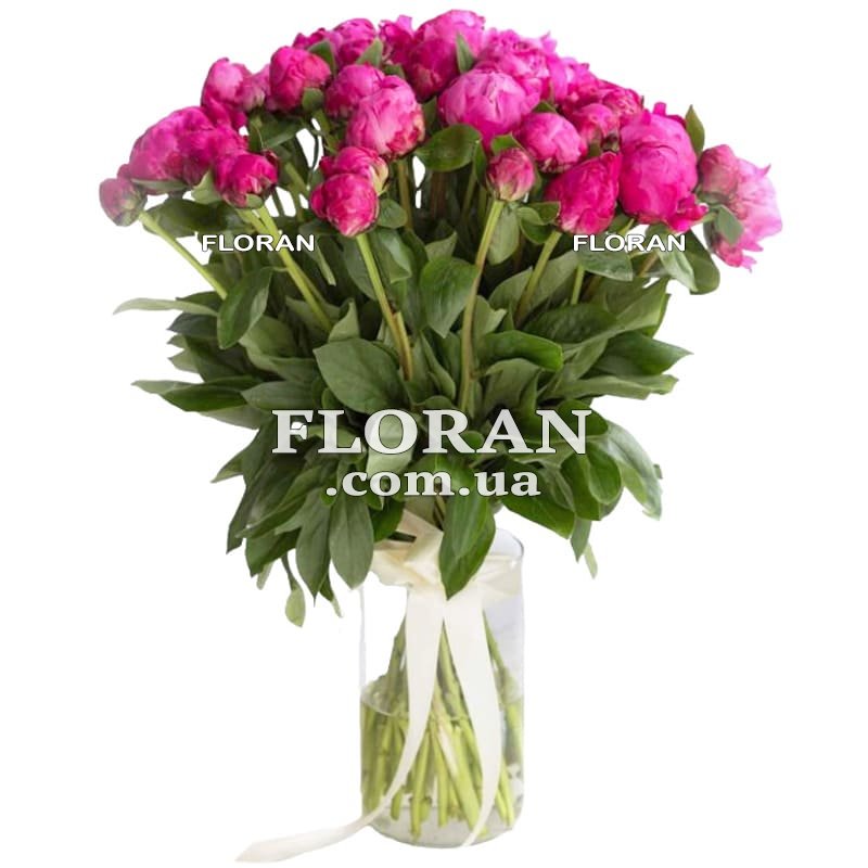 Букет з рожевих півоній - код товару FL-961. Букет із сорока п'яти рожевих півоній - це справжнє втілення ніжності та жіночності. Рожеві півонії, з їх витонченими пелюстками та пишним об'ємом, надають букету чудову красу та пишність. Кожен півон у цьому букеті розкривається у прекрасну рожеву розкіш, створюючи враження живої картинки. Рожевий колір півонії символізує любов, ніжність, романтику та чуттєвість. Він переносить нас у світ м'яких емоцій та прекрасних моментів, створюючи атмосферу тепла та умиротворення.