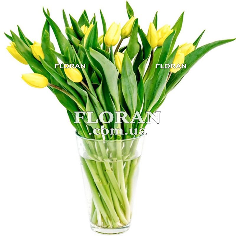 19 жовтих тюльпанів, стрічка або упаковка