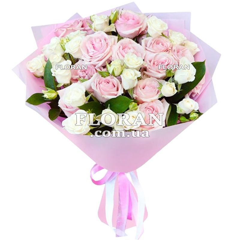 Букети з троянд на весілля - код товару FL-1238. На весільну урочистість ідеально підійде елегантний букет із троянд. Ось пропозиція для такого букета: