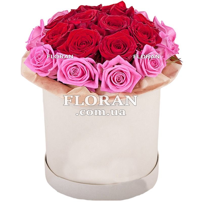 Червоні та рожеві троянди в коробці – код товару FL-1794 – це ідеальний вибір для тих, хто бажає створити враження та здивувати свого одержувача. Червоні троянди символізують пристрасть та глибокі почуття, тоді як рожеві троянди виражають ніжність, романтику та дружню прихильність. Цей чудовий букет підходить для різних випадків та свят. Він може бути ідеальним подарунком для вашої коханої, щоб висловити їй свою любов та пристрасть. Також він може бути чудовим подарунком для дівчини на День Народження або Ювілей, щоб привітати її та привнести радість у особливий день. Коробка, в якій представлені ці прекрасні квіти, надає композиції особливого шарму та елегантності. Вона захищає та зберігає свіжість троянд, а також надає букету стильного та сучасного вигляду. Отримувач буде радий одержати такий вишуканий подарунок, який виділиться серед звичайних букетів. Наша доставка квітів дозволить вам доставити цей чудовий букет в будь-яке місто чи місце, де ви хочете здивувати вашого отримувача. Наша команда професійних кур'єрів доставить букет вчасно та дбайливо, щоб ваше привітання було особливим та незабутнім. Не пропустіть можливість порадувати своїх близьких або близьких людей цією чудовою композицією з червоних та рожевих троянд у коробці. Цей букет стане незабутнім символом ваших почуттів та побажань.