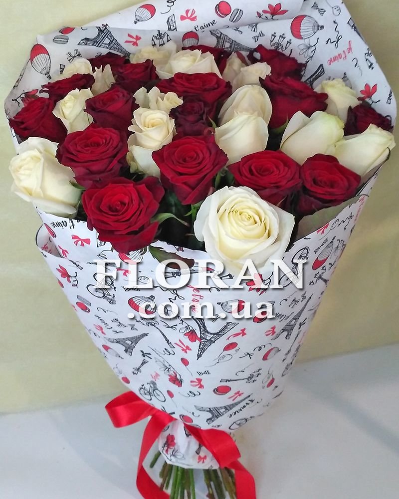 Червоно білий букет - код товару FL-09. Цей букет із троянд стане чудовим подарунком для будь-якого випадку. У ньому зібрано 25 червоних і білих українських троянд, які символізують любов і чистоту. Букет троянд - це завжди актуальний і красивий подарунок, який порадує будь-яку людину. Червоного і білого кольору троянди гармонійно поєднуються одна з одною, створюючи яскравий образ, що запам'ятовується. Цей букет з українських троянд буде чудовою прикрасою будь-якого інтер'єру і подарує масу позитивних емоцій. Подаруйте цей букет троянд своїй коханій, мамі, сестрі або колезі - він стане чудовим символом вашої турботи й уваги.