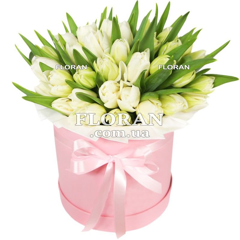 Елегентна коробка для тюльпанів - код товару FL-2902. У цій елегантній коробці розквітає пишність 45 білих тюльпанів - це не просто букет, а справжній витвір мистецтва. Давайте розглянемо, чому ці квіти в коробці настільки елегантні та прекрасні. Білий колір - символ чистоти та невинності: Білі тюльпани - це втілення ніжності та чистоти. Цей колір символізує новий початок, світле майбутнє та гармонію. 45 тюльпанів - велична краса: Велика кількість білих тюльпанів створює величний букет. 45 бутонів - як море елегантності, яке наповнює простір теплом та світлом. Коробка - незвичайний акцент: Коробка, в якій представлено цей букет, додає нотку незвичайності. Це не просто упаковка, а деталь декору, яка підкреслює стиль та вишуканість подарунка. Елегантність у кожній деталі: Кожен тюльпан, кожна пелюстка цього букета - це твір природи. Їхня елегантність підкреслюється структурою білих пелюсток, створюючи враження ніжності та вишуканості. Ідеальний подарунок для особливих моментів: Цей букет - чудовий вибір для особливих моментів у житті: романтичних побачень, днів народження, весільної урочистості або просто для того, щоб зробити день близької людини особливим. Емоційна глибина: Цей букет містить у собі емоційну глибину. Він висловлює почуття та емоції краще, ніж тисячі слів. Елегантність у кожній тюльпановій нирці - це історія кохання, тепла та захоплення. Доставка з турботою: Ми розуміємо, що кожен момент є цінним, тому наші кур'єри забезпечують дбайливу доставку. Ваш букет дійде до отримувача в ідеальному стані, щоб подарувати радість та умиротворення. Біла краса для особливих зустрічей: Цей букет - це струмінь свіжості, біла краса, яка створює атмосферу затишку та радості. Будьте впевнені, що цей подарунок залишиться в серці вашої близької людини.