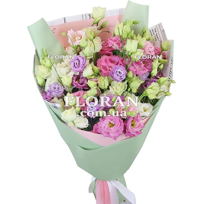 Еустома мікс - код товару FL-369. Різнокольоровий букет з еустом – це справжній калейдоскоп фарб та відтінків! У ньому можуть бути яскраві насичені кольори, такі як червоний, рожевий, фіолетовий, а також ніжніші відтінки, включаючи білий і блідо-рожевий. Кожне стебло еустоми рясно усипано безліччю дрібних квіток, що створює пишну та повітряну хмару з пелюсток. Цей букет зазвичай асоціюється з чимось строкатим та яскравим, що робить його ідеальним подарунком для тих, хто любить життя та цінує різноманітність. Крім того, еустома відома своїм приємним солодкуватим ароматом, який може нагадати про літній сад. Різнокольорові еустоми додадуть яскравих фарб у вашу оселю і піднімуть настрій. Не пропустіть можливість порадувати себе та своїх близьких цим прекрасним букетом з 19 різнокольорових еустом.