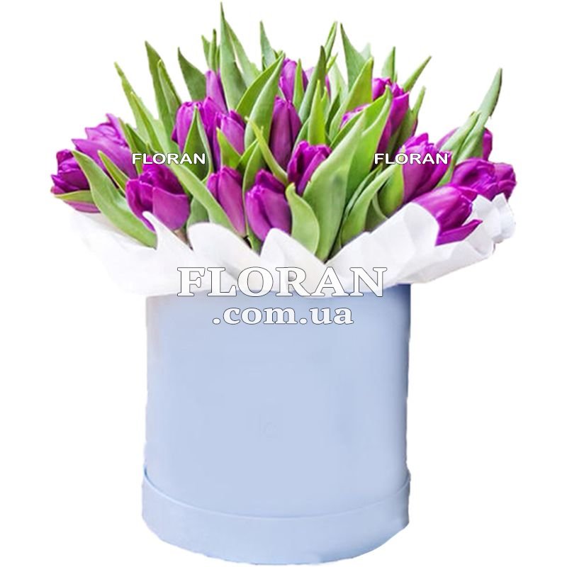 Фіолетові тюльпани в коробці - код товару FL-2874 - це вишуканий та стильний подарунок, який несе у собі не лише красу природи, а й глибокі почуття. Фіолетовий колір символізує таємничість, розкіш і височина, роблячи цей букет чудовим вибором для вираження поваги та захоплення. Цей неймовірно елегантний композиційний акцент у коробці підкреслить ваше захоплення та турботу про те, кому призначено цей чудовий подарунок. 35 тюльпанів у фіолетовому відтінку створять приголомшливий візуальний ефект, приковуючи погляди та викликаючи захоплення. Фіолетові тюльпани в коробці підходять для різних подій, будь то день народження, ювілей, побачення або просто бажання порадувати близьку людину. Цей подарунок буде говорити про ваш тонкий смак і готовність створити надзвичайний момент у житті того, хто його отримає. Ми також пропонуємо зручну послугу доставки. Наші кур'єри із задоволенням доставлять цей чудовий букет у потрібне місце, створюючи момент неймовірної радості та здивування для того, хто щасливий володар такого чудового подарунка.