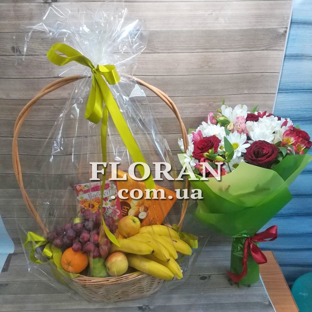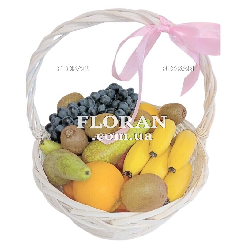 Фруктова корзинка - код товару FL-465. Невеликий кошик фруктів - це чудовий і корисний подарунок, який підійде для будь-якого випадку, будь то побажання якнайшвидшого одужання, день ангела або просто бажання порадувати близьку людину. У кошику може бути різноманітність фруктів, таких як яблука, груші, банани, ківі, апельсини. Вони не тільки смачні, але й багаті на вітаміни, мінерали та інші поживні речовини, які необхідні для здоров'я та гарного самопочуття.