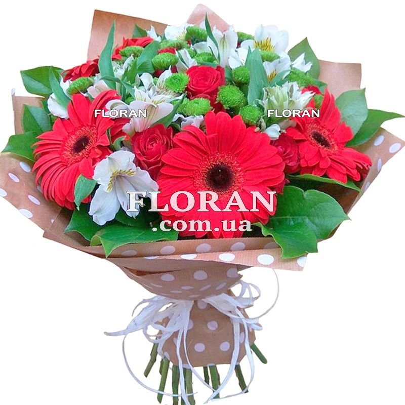 - 5 червоних гербер. Червоні гербери символізують пристрасть, силу та енергію. Вони надають букету яскравості та виразності, відбиваючи силу та впевненість чоловічої натури.