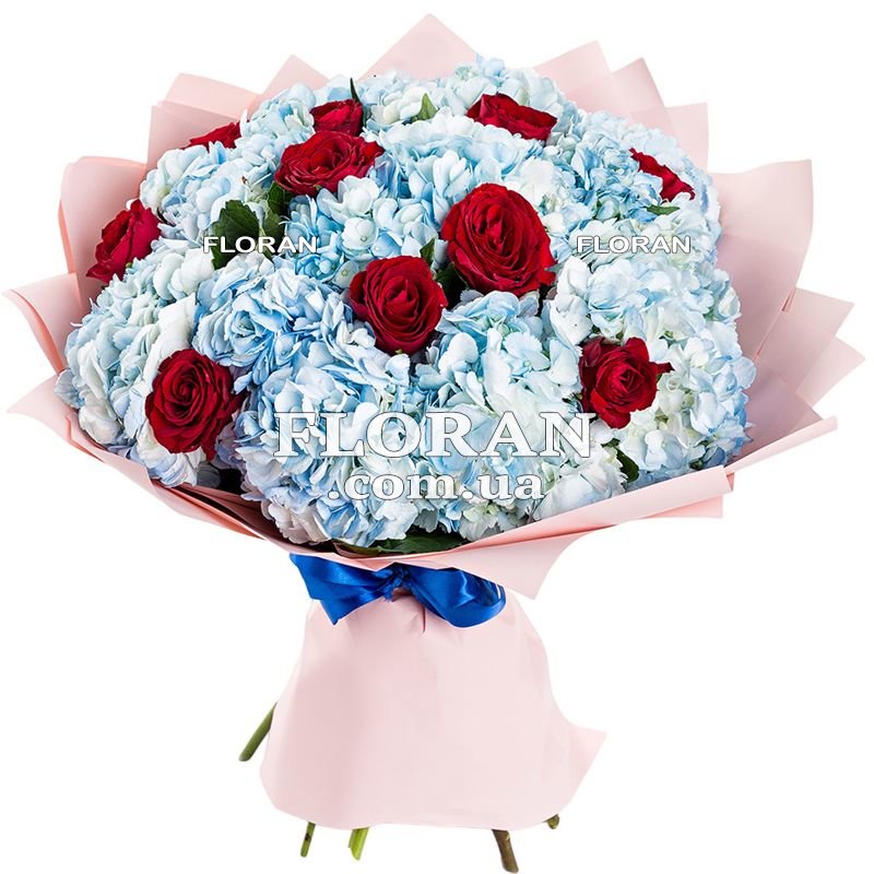 Гарний букет для коханої - код товару FL-1222 - це чудовий спосіб висловити свою любов і турботу, особливо якщо ваш чоловік знаходиться далеко. Букет для коханої включає в себе 11 червоних троянд, які символізують пристрасть, любов і прихильність. Червоні троянди є класичним вибором, щоб показати, що ваше кохання до неї горить яскраво і невгасимо. 14 блакитних гортензій додають особливий шарм і ніжність у букет. Блакитна гортензія символізує щирість, гармонію і вірність, що ідеально підходить для вираження вашої прихильності і відданості. Цей красивий букет стане прекрасним подарунком для вашої коханої. Він покаже їй, як сильно ви її цінуєте і скільки вона означає для вас, навіть на відстані. Упаковка додасть додатковий шарм і захист для букета, щоб він досяг мети в бездоганному стані. Отримати такий прекрасний букет від вашого чоловіка, який перебуває далеко, напевно викличе у вашої коханої радість, щастя і теплі почуття. Він стане символом вашої любові і свідченням про те, що ви завжди поруч, навіть на відстані.