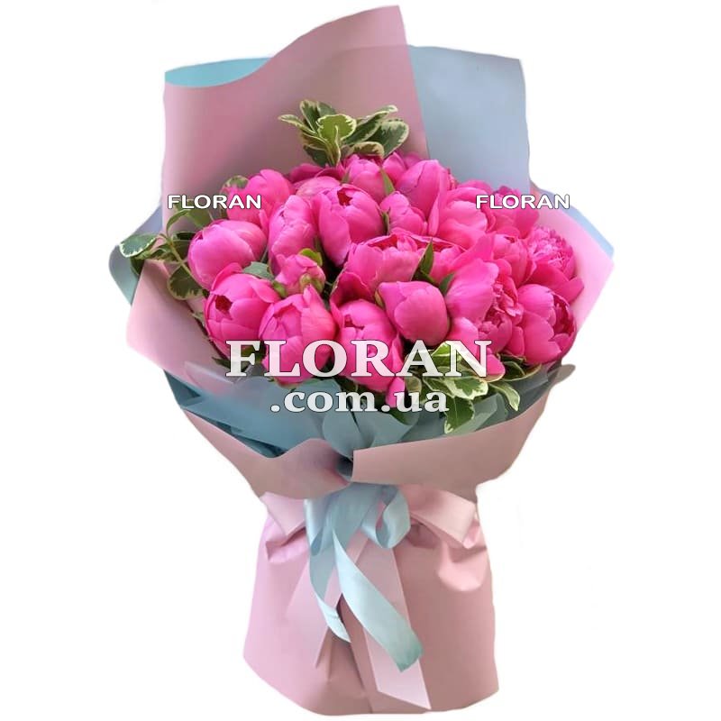Кожна рожева місцева півонія в цьому букеті буде передавати ваше захоплення і прихильність. Він буде нагадувати про вашу ніжність і турботу кожен раз, коли одержувач буде насолоджуватися цим прекрасним букетом. Гарний букет півоній стане виразним символом вашої любові і поваги.