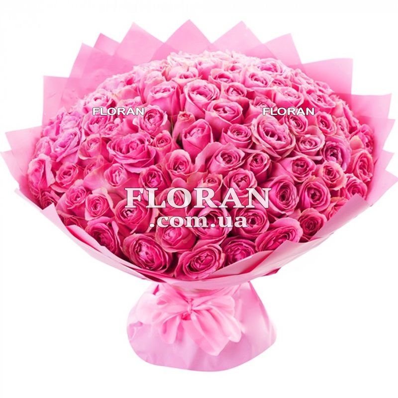 Гарний букет рожевих троянд - код товару FL-1432. Чарівний букет із 101 рожевої троянди стане прекрасним виразом кохання, ніжності та захоплення. Рожеві троянди є символом романтики, краси та елегантності. Кожна троянда в цьому букеті має довжину стебла 50 см, що надає йому витонченості та привабливості. Яскравий і водночас ніжний відтінок рожевих кольорів створить атмосферу кохання та умиротворення. Букет із 101 рожевої троянди є ідеальним подарунком для особливих моментів у житті, таких як дні народження, річниці, побачення або просто для того, щоб висловити свої почуття та увагу до коханої людини. Ви можете замовити цей красивий букет троянд онлайн і вибрати зручний спосіб доставки. Букет буде ретельно упакований, щоб зберегти свіжість та красу квітів під час доставки. Подаруйте рожеву троянду, щоб показати свою любов, відданість і важливість одержувачу у вашому житті. Цей букет стане незабутнім і залишить незабутні враження, наповнивши серце того, хто його отримає, радістю та щастям.
