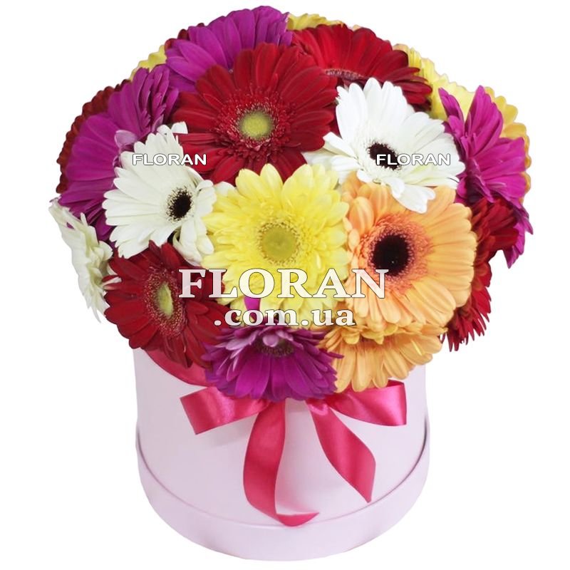 25 різнокольорових гербер, коробка