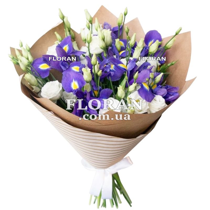 10 білих еустом, 9 ірисів, упаковка