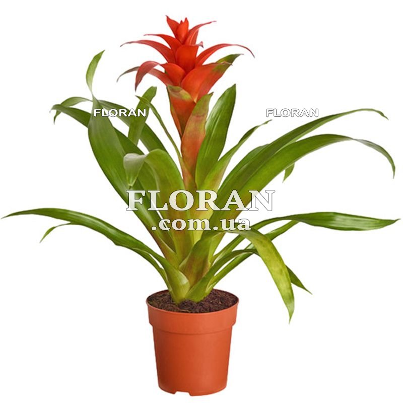 Кімнатні рослини у подарунок - код товару FL-574. Хочете порадувати близьку людину незвичайним подарунком? Подаруйте рослину в горщику! Гусманія - це прекрасна рослина для горщика, яка прикрасить будь-який інтер'єр. Воно має красиве зелене листя з білими цятками і цвіте яскравими кольорами різних відтінків. Гусманія - це кімнатна рослина, яка не потребує особливого догляду. Йому досить регулярного поливу та помірного освітлення. Крім того, гусманія очищає повітря в приміщенні, роблячи його свіжішим і здоровішим. Подаруйте гусманію в гарному горщику і вона стане чудовою окрасою будинку чи офісу.