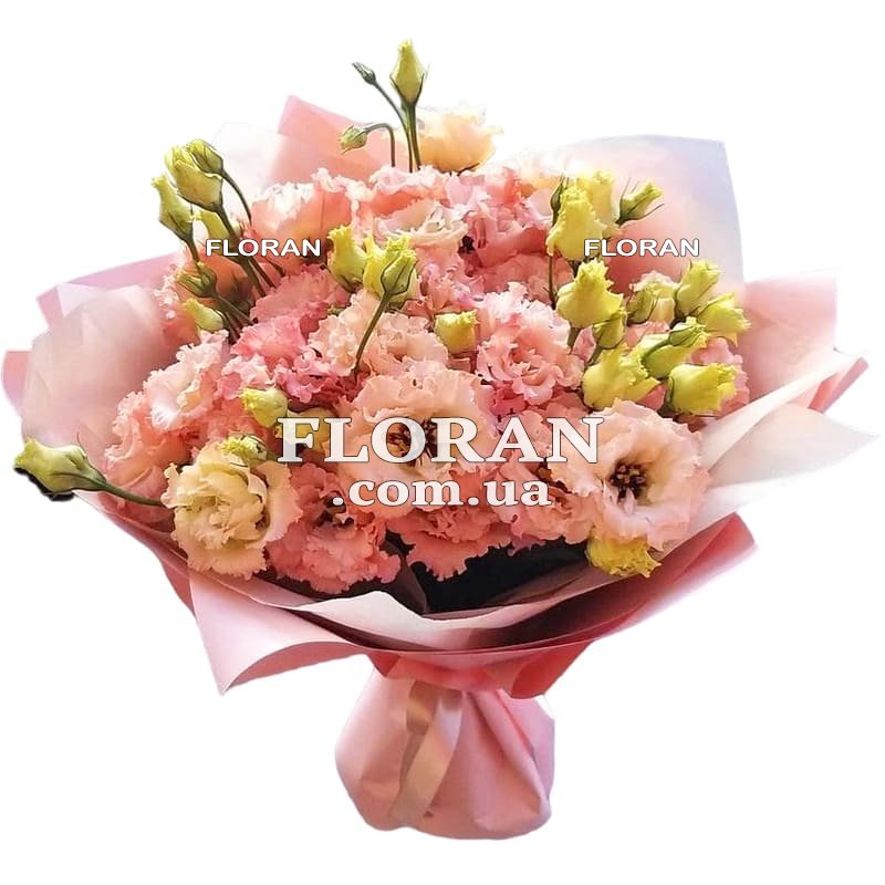 Композиція з еустомою – код товару FL-988. Композиція з 15 рожевими еустомами - це дивовижний твір квіткового мистецтва, який полонить своєю ніжністю та витонченістю. Рожеві еустоми є символом любові, ніжності та краси, і їхня присутність у цій композиції створює атмосферу романтики та захоплення. Букет із 15 рожевих еустом наповнює простір ніжним ароматом та привертає погляди своєю вишуканою красою. Ця композиція буде ідеальним подарунком для особливих випадків, таких як день народження, ювілей, весілля або просто для того, щоб показати своє кохання та захоплення близькій людині.