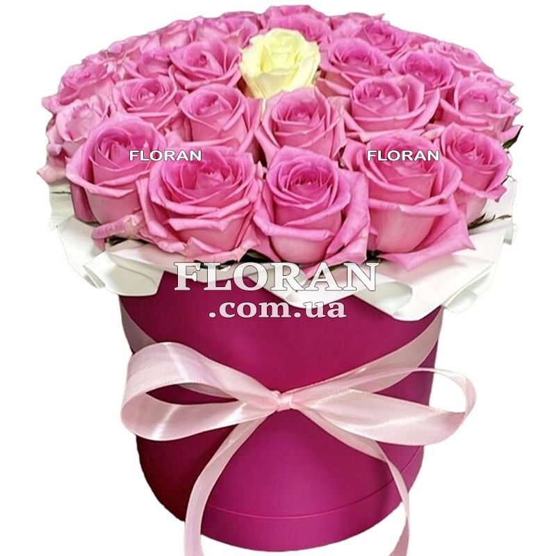 Композиція з квітів у шляпній коробці - код товару FL-1765 - це унікальна та елегантна композиція, яка включає 34 рожеві троянди та в центрі одну прекрасну білу троянду. Цей букет стане чудовим подарунком для особливих моментів у житті – романтичних побачень, днів народження, ювілеїв чи просто для того, щоб порадувати близьку людину. Рожеві троянди символізують ніжність, кохання та емоційну прихильність. Їхні м'які відтінки надають композиції вишуканості та романтичності. Біла троянда у центрі виділяється та символізує чистоту, непорочність та глибоку повагу. Коробка з-під капелюха надає композиції особливого шарму і стилю. Вона ідеально підкреслює красу кольорів та створює ефектний акцент. Композиція представлена у ретельно оформленій коробці, що робить її зручною у транспортуванні та збереженні свіжості кольорів. Ми готові доставити цю чудову композицію в капелюшній коробці в будь-яке місто або місце, вказане вами. Наша команда кур'єрів забезпечить безпеку та свіжість квітів, щоб ваш подарунок був ідеальним. Ви можете бути впевнені, що наша доставка буде професійною та конфіденційною. Ми поважаємо вашу приватність і гарантуємо, що ваш подарунок буде передано до рук адресата із турботою та увагою. Наша служба доставки працює у тісній співпраці з надійними партнерами по всій країні, щоб забезпечити вам максимальну гнучкість та зручність. Ваша особлива людина буде приємно здивована і захоплена цією прекрасною композицією. Подаруйте цю композицію з квітів у капелюшній коробці, щоб висловити свою любов, повагу та захоплення вашій особливій людині. Це буде незабутній та елегантний подарунок, який вони довго пам'ятатимуть і цінуватимуть.
