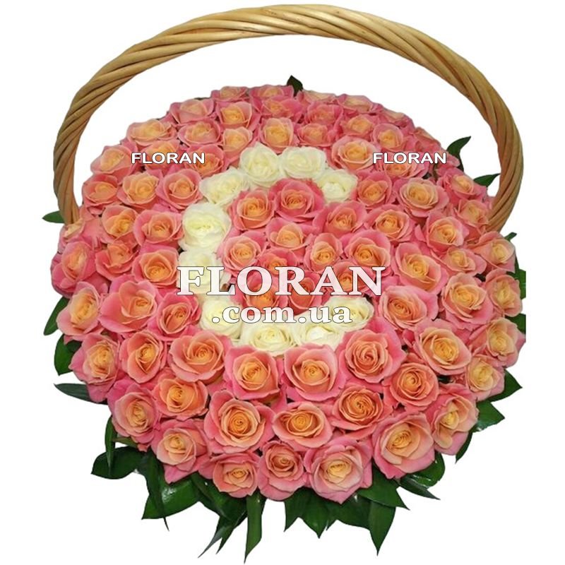 Композиція з троянд - це завжди гарний вибір, адже троянди - це класика, яка ніколи не вийде з моди. У нашій композиції присутні 87 троянд білого і персикового кольору, які гармонійно поєднуються одна з одною і створюють неповторний образ.