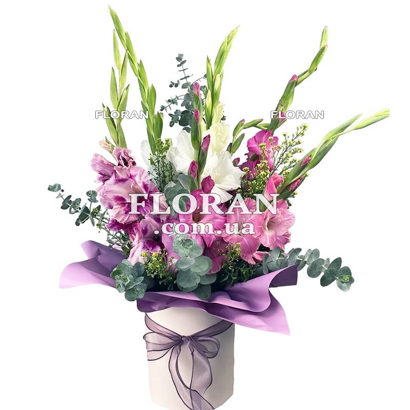 Коробка гладіолусів - код товару FL-1919 - це унікальне поєднання ніжності та краси, яке змусить серце радіти та душу захоплюватися. Дев'ять рожевих і білих гладіолусів, вплетених у зелень, надають цій коробці особливу витонченість та шарм. Рожевий колір гладіолусів символізує ніжність, кохання та жіночність, а білий – чистоту та піднесеність почуттів. Таке поєднання кольорів створює гармонійну композицію, яка ідеально підходить для подарунка особливим людям. Коробка, в яку акуратно розміщені гладіолуси та зелень, додає елегантності та робить цей букет ще більш привабливим. Оформлений таким чином, він стане чудовим подарунком для будь-якої нагоди – від романтичного побачення до привітання з днем народження. Щоб порадувати своїх близьких таким чудовим подарунком, оформіть замовлення на нашому сайті. Наші досвідчені флористи зберуть цю унікальну коробку з гладіолусами із турботою та любов'ю. Після цього наші кур'єри доставлять її в потрібне місце та час. Подаруйте своїм близьким коробку з гладіолусами та подаруйте їм незабутні моменти радості та щастя. Цей прекрасний букет стане унікальною прикрасою та яскравим спогадом про важливі події та свята. Він подарує море позитивних емоцій та зробить ваш подарунок по-справжньому особливим!