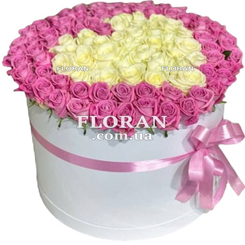 101 біла та рожева троянда, коробка