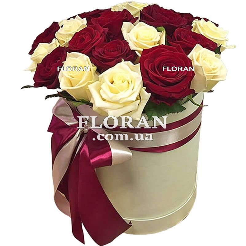 25 червоних та білих троянд, коробка