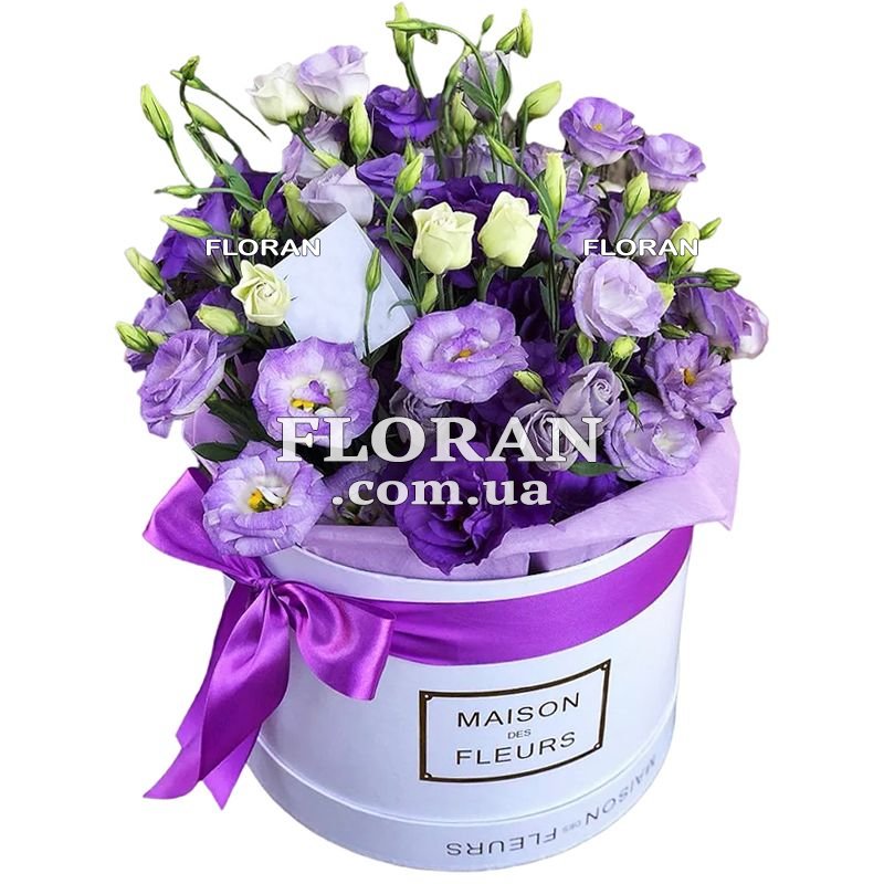 Коробка з фіолетовими еустомами - код товару FL-2960 - це чудова композиція, яка поєднує в собі вишуканість та загадковість фіолетового кольору еустоми. Букет, що складається з 19 прекрасних фіолетових еустів, виражає глибоку прихильність та повагу. Фіолетовий колір еустоми символізує розкіш, таємничість та повагу. Цей букет підходить для подарунка як жінці, так і чоловікові, адже фіолетовий колір універсально гарний і привабливий для обох статей. Коробка з фіолетовими еустомами стане унікальним подарунком для будь-якої події: від дня народження до професійних свят. Наші кур'єри з радістю доставлять цей чудовий букет за адресою, щоб створити неповторну атмосферу радості та захоплення. Здивуйте та порадуйте ваших близьких цією чарівною композицією фіолетових еустом у стильній коробці.
