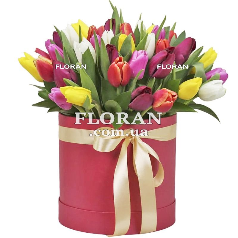 Коробка з тюльпанами на подарунок - код товару FL-2854 - стане яскравим та незабутнім подарунком. Тюльпани, втілення весняної свіжості та краси, чудово підкреслять вашу турботу та увагу до одержувача. Різнобарвність бутонів у коробці створює справжню палітру емоцій та почуттів. Кожен тюльпан - немов нота у мелодії весни, розкриваючи свою унікальність та привабливість. Червоні, рожеві, жовті, фіолетові - ці кольори стануть яскравим втіленням вашої любові та прихильності. Щоб цей букет досяг свого адресата в ідеальному стані, скористайтесь нашою послугою доставки. Наші кур'єри з турботою та увагою доставлять цей весняний сюрприз прямо до рук вашої близької людини. Ми гарантуємо свіжість та довговічність кожного тюльпану, щоб ваші побажання були передані яскраво та барвисто. Ця коробка з тюльпанами - не просто букет квітів, це втілення весняного чаклунства та радості. Подаруйте частинку весни із цим неймовірним букетом!