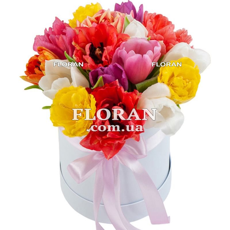Коробочка різнокольорових тюльпанів - код товару FL-2871 - це не тільки букет, але справжня коробочка веселки та яскравих емоцій. Поєднання 19 різнокольорових тюльпанів в одній композиції створює враження веселощів та свята. Цей яскравий букет подарує вашій близькій людині не лише красу природи, а й яскраві моменти у житті. Тюльпани - весняні квіти, символ оновлення і свіжості. Їхня різноманітність відображає різні відтінки почуттів: від ніжного кохання до яскравої радості. Кожна квітка, будучи унікальною, робить свій внесок у цю весняну симфонію. А коробка, така незвичайна для тюльпанів, додає цієї композиції шарм та ексклюзивність. Крім того, наша служба доставки забезпечить ваш подарунок дбайливим шляхом до адресата. Ви можете впевнено вибирати цей букет для різних приводів: від привітання з днем народження до того моменту, коли ви хочете просто сказати спасибі або я думаю про тебе. Така коробочка тюльпанів - це не просто квіти, а маленький яскравий шматочок веселощів та свіжості, який прикрасить будь-який день.