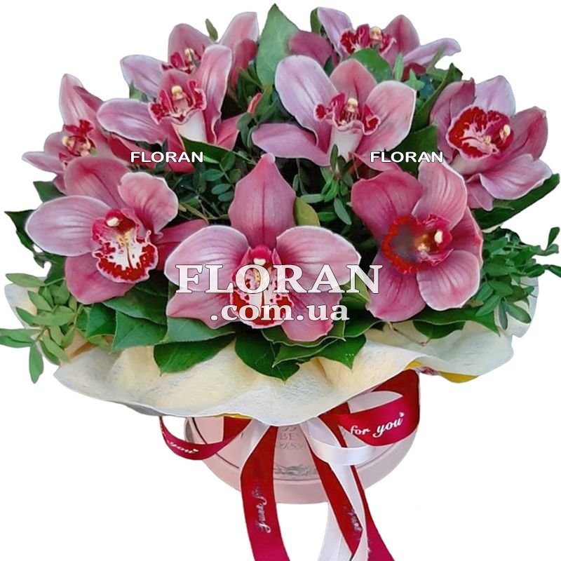Коробочка з орхідеями - код товару FL-1645 - це вишуканий та стильний подарунок, який порадує отримувача своєю красою та оригінальністю. У цьому випадку коробочка прикрашена 11 рожевими орхідеями, які надають їй особливої елегантності. Рожеві орхідеї символізують любов, ніжність та жіночність. Вони створюють атмосферу романтики та надають букету вишуканості. Комбінація зелені та рожевих орхідей створює гармонійне поєднання кольорів і надає букету свіжості та природності. Капелюшна коробка, в якій представлені орхідеї, додає шарму та унікальності цьому букету. Коробка може бути використана як декоративний елемент або навіть функціональний аксесуар. Ми пропонуємо доставку коробочки з орхідеями до будь-якого міста України. Наш магазин гарантує високу якість кольорів та своєчасну доставку, щоб ваш подарунок приніс радість та захоплення одержувачу. Замовте цю унікальну коробочку з рожевими орхідеями та порадуйте своїх близьких та друзів чудовим подарунком. Цей букет стане справжньою родзинкою та чудовою прикрасою для будь-якого інтер'єру.