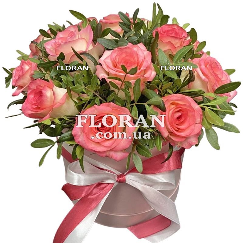 Коробочка з трояндами для дівчинки - код товару FL-1842. Коробочка з 13 трояндами Джумілія та зеленню - чудовий вибір для особливої дівчинки. Цей ніжний та стильний букет дозволить висловити свою ніжність та турботу до юної одержувачки. Троянди Джумілія відрізняються своїм ніжним забарвленням та витонченою формою. Їхня краса та елегантність привертають увагу і створюють атмосферу чарівництва. Кожна троянда у цій коробочці виглядає як справжній шедевр природи. Зелень, що використовується в композиції, додає свіжості та акцентує красу троянд. Вона підкреслює їх витончені форми та створює гармонійне поєднання кольорів та текстур. Коробочка, в якій представлені троянди, є не лише захистом для квітів, а й стильним елементом декору. Вона додає особливий шарм і завершує образ букета, створюючи ефект завершеності та елегантності. Цей букет у коробочці - чудовий подарунок для дівчинки на особливий день, такий як її день народження, випускне або інше свято. Він висловить вашу любов, турботу і ніжність, показавши, що вона особлива і заслуговує на найкраще. Наша команда доставки гарантує безпеку та своєчасність доставки цього особливого букета. Ми розуміємо важливість кожного моменту і робимо все можливе, щоб букет досяг отримувача у свіжому та бездоганному стані, щоб створити незабутні враження. Виберіть цю коробочку з 13 трояндами Джумілія та зеленню, щоб подарувати юній дівчинці момент щастя та краси. Цей букет стане особливим символом вашої любові та уваги. Замовте його зараз та створіть незабутні враження для вашої особливої дівчинки.