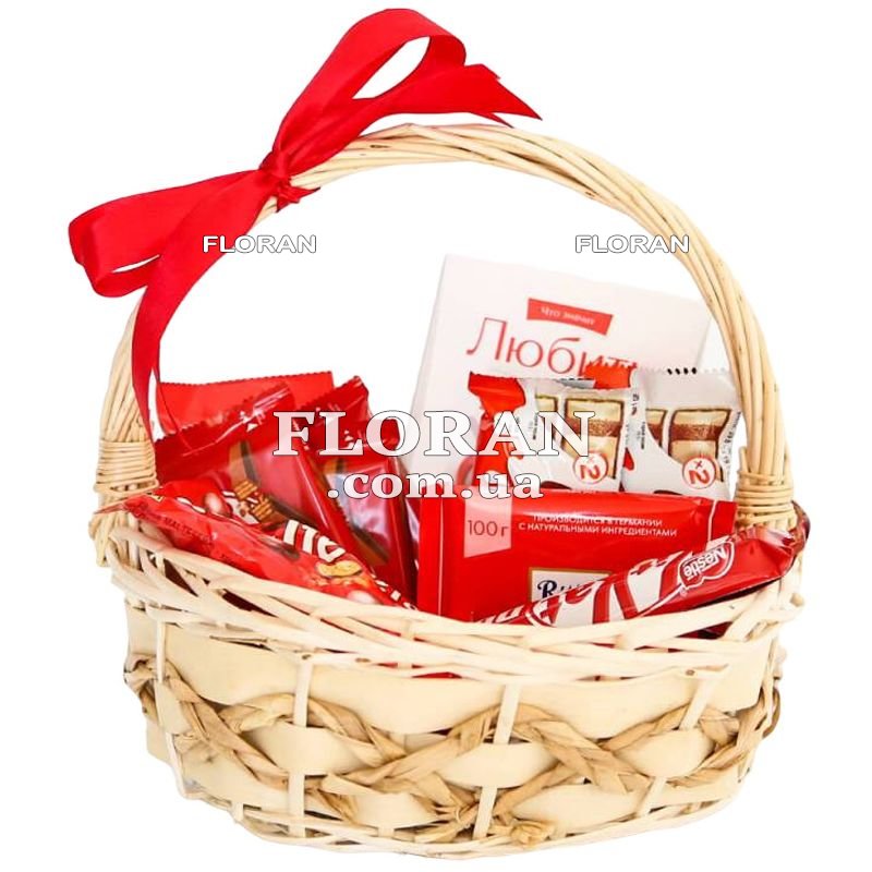 Кошик із цукерками у подарунок - код товару FL-475. Маленький кошик із солодощами - це чудовий подарунок для будь-якої людини, хто любить солодощі. У ній зібрані різні види шоколадних ласощів: найсмачніші цукерки Raffaello, батончики Kinder Bueno, драже, батончики KitKat та плитки шоколаду. Такий подарунок ідеально підійде для дітей або для вашої коханої, яка любить солодощі. Кожен елемент кошика - це справжній шедевр, який порадує будь-якого ласуна. Незалежно від приводу – це чудовий спосіб показати свою турботу та увагу до близької людини.