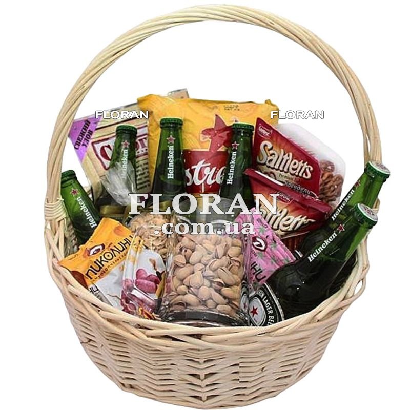Кошик у подарунок чоловікові - код товару FL-564. Подарунковий кошик з вишуканими делікатесами - чудовий подарунок для чоловіка, який любить насолоджуватися смачною та якісною їжею. У ній є все, щоб створити ідеальну атмосферу для затишного вечора чи приємної компанії із друзями. Відмінний вибір для Дня Народження, ювілею чи іншого свята. У цьому кошику можна знайти все, що потрібно для справжнього гурмана – від сирокопченої ковбаси до горіхів та солодощів. Арахіс, фісташки, чіпси, сухарики, ковбаски та снеки – це відмінний вибір для тих, хто любить закушувати під час перегляду фільму чи спортивного матчу. Кошик у подарунок чоловікові – це не тільки смачні закуски, але й стильний аксесуар, який можна використовувати для зберігання різноманітних дрібниць. Подаруйте цей кошик своєму татові, брату чи хлопцеві та порадуйте його смачними та корисними подарунками!