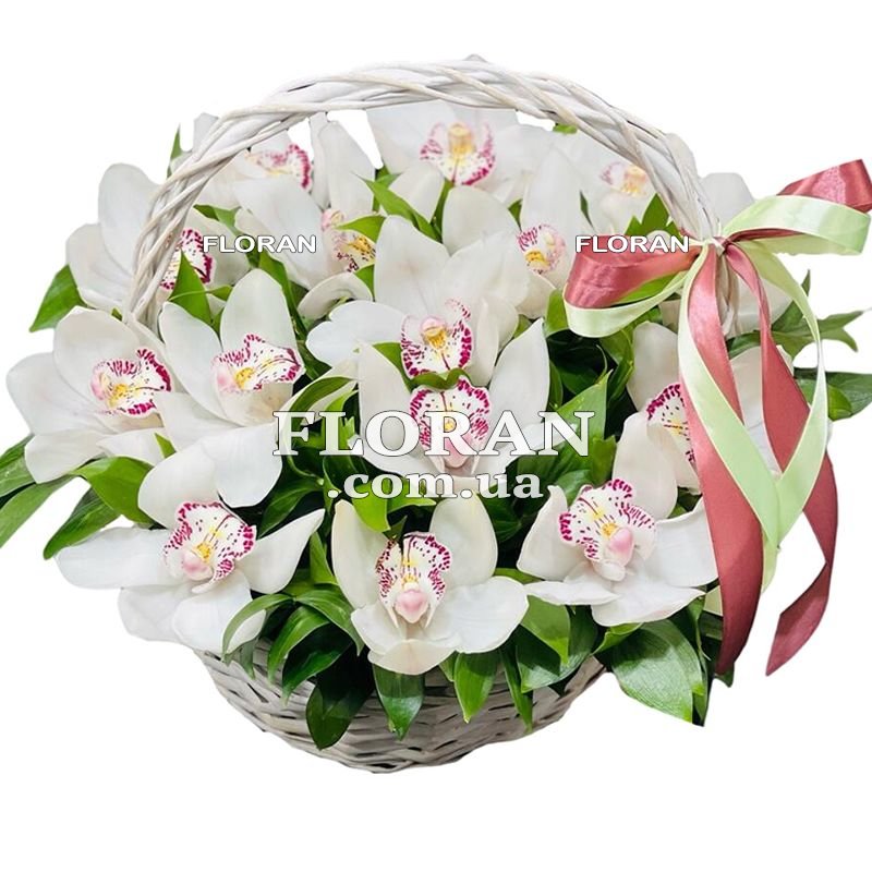 Кошик з білими орхідеями