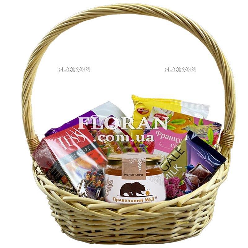 Кошик з чаєм і медом - код товару FL-2059 - справжнє задоволення для цінителів чаю та натуральних солодощів. До її складу входять добірні інгредієнти, які подарують незабутній смак та затишні моменти. Листовий чай у цьому кошику приготовлений з особливою турботою, щоб кожен заварений філіжанка була справжньою насолодою. А для ідеальної пари з чаєм ми додали натуральний мед, який подарує цьому чаю неповторну насолоду та аромат. Зефір у цьому кошику — справжня ніжність, яка тане в роті і залишає приємний смак. А цукати та сушіння нададуть чаюванню оригінальності та різноманітності у смаках. Для любителів солодкого та гіркого в цьому кошику представлені плитки шоколаду, які задовольнять навіть найвишуканіших гурманів. Таким чином, цей кошик ідеально підходить для чаювання в затишній обстановці, для створення романтичного настрою або просто для того, щоб подарувати приємні моменти собі чи близьким. Ви можете легко замовити цей кошик через наш сайт або месенджери, і ми доставимо його в будь-яке зручне місце для вас. Насолоджуйтесь натуральними смаками та створюйте незабутні моменти з цим чудовим кошиком чаю та меду.